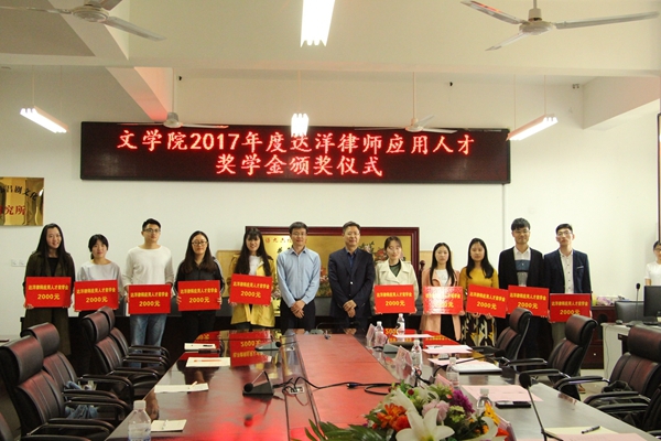 文学院举行2017年度达洋律师应用人才奖学金颁奖仪式