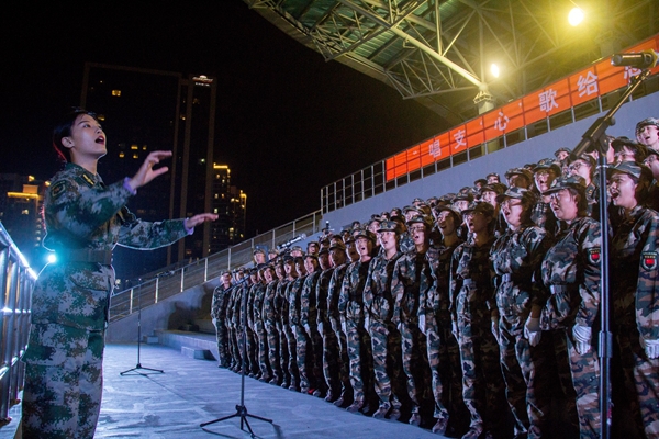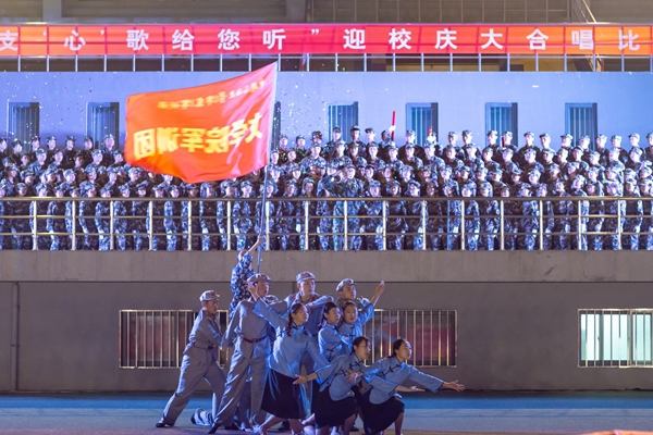 为迎接65周年校庆,9月24日,我校于体育场举办“唱支‘心’歌给您听”迎校庆大合唱比赛。由我院18级学生组成的军训六团夺得合唱比赛的一等奖和最佳指挥奖。