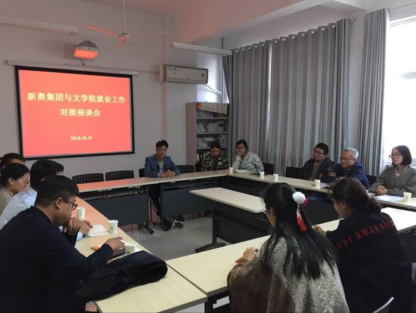 为了我院学生就业工作更好推进,10月19日,新奥集团与文学院就业工作对接会文理楼306举行,会议由文学院党委副书记邹维忠主持,文学院研究生毕业班辅导员梅琳、本科生毕业班辅导员杜文倩及各专业学生代表参加。
