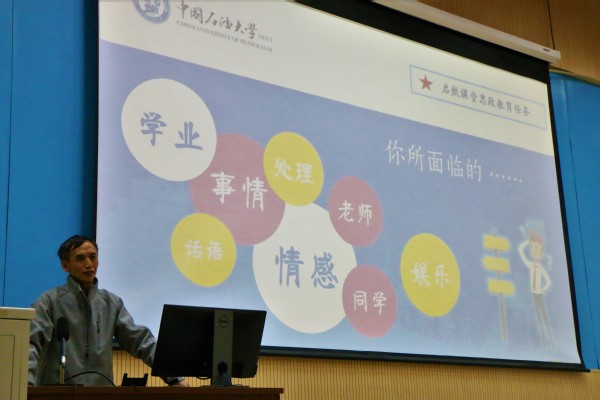 会议伊始,辅导员赵振华指出本次活动的宗旨,并对主讲人进行介绍。本次课程分为两个部分。首先由储运与建筑工程学院辅导员周辉就安全问题进行题为《凡事,看三步——新生安全教育》的课程宣讲。周辉从学业、话语、事件、情感、处理、老师、同学以及娱乐八个方面进行安全教育讲授,从身边案例出发,由小及大,提醒同学们在各个方面需有包容之心、全面看待问题,积极寻求安全隐患的解决办法。