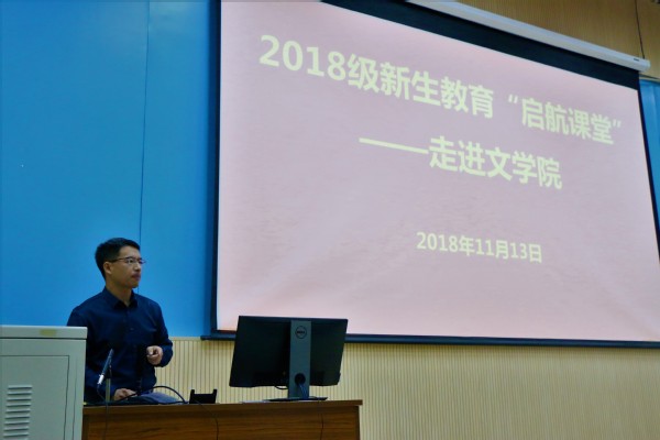 为做好新生入学教育工作,引导新生尽快适应大学生活,11月13日晚,2018级新生教育启航课堂走进文学院,在南教300开课。本次课程由文学院团委书记、2018级辅导员赵振华主持,储运与建筑工程学院辅导员周辉、经济管理学院辅导员孟兆刚主讲,文学院党委副书记邹维忠、少数民族辅导员米娜瓦尔及学院各年级辅导员出席,2018级全体本科生参加。