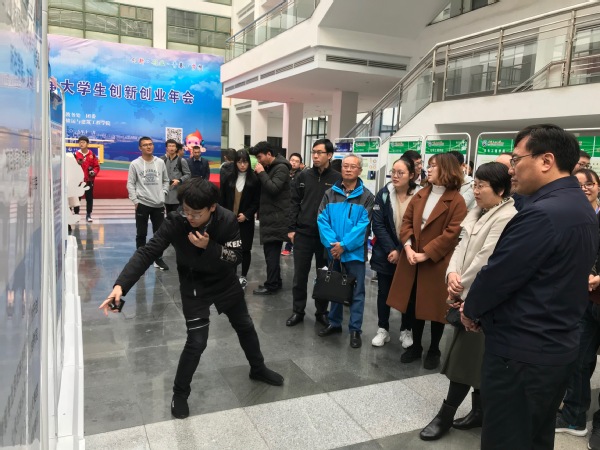 “这个项目挺新颖,那个项目好像也不错”“这个项目我们怎么没想到呢”,开幕式现场,不少学生驻足、讨论是对年会展出的创新创业项目的肯定。
