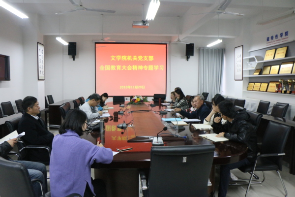 1120日,院机关党支部在文理楼358会议室专题学习全国教育大会精神。院党委书记张永宁,党委副书记邹维忠,院机关党支部相关成员出席本次会议。