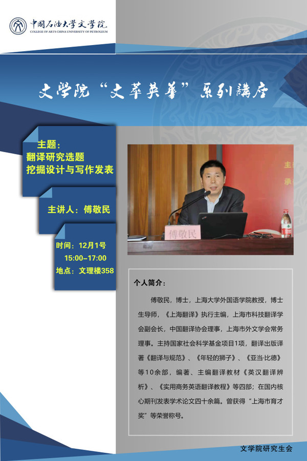 【学术讲座预告】翻译研究选题挖掘设计与写作发表