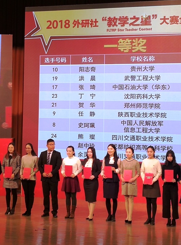 2018外研社“教学之星”大赛全国总决赛于127日在北京正式拉开帷幕,来在全国院校的26名复赛冠军登上全国总决赛舞台。经过紧张激烈的角逐,我院大学英语一系张琦老师荣获2018外研社“教学之星”大赛全国总决赛一等奖,并获得2019年7月赴国外或港澳地区交流访学的机会。