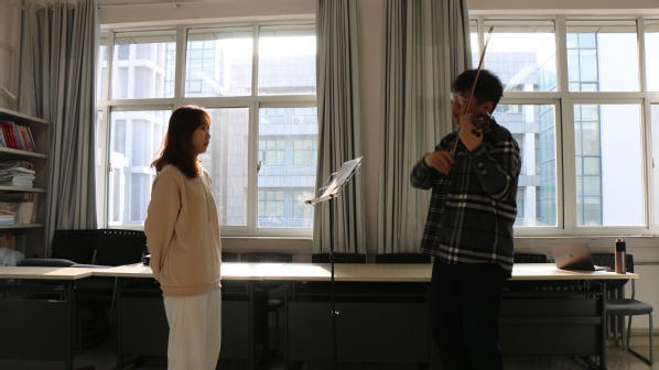 10月30日上午太阳成集团tyc151cc在文理楼306为本次参加学校青年教师讲课比赛的老师们,进行了赛前演练和指导。此次参赛的两位老师是音乐系的小提琴教师郭颂和舞蹈教师张志雄。参赛课程均属于音乐系技能类的课程。