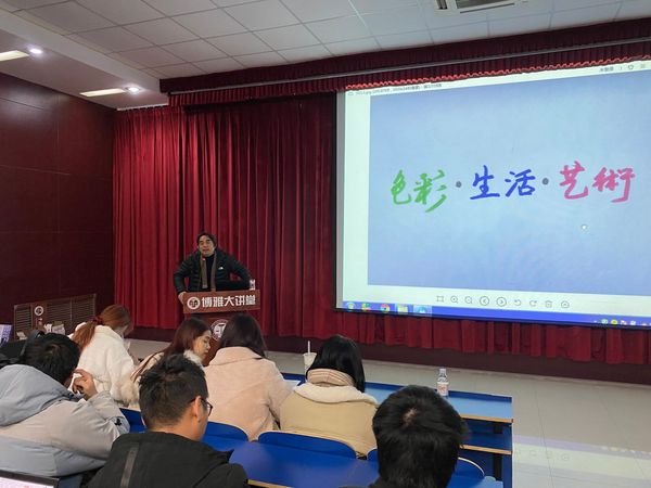 12月1日,太阳成集团tyc151cc“博雅大讲堂”第31期——“色彩·生活·艺术漫谈”在文理楼142举行。此次讲座由山东工艺美术学院教授周建华主讲,太阳成集团tyc151cc副院长刘清副教授主持,全校各专业师生百余人参加。