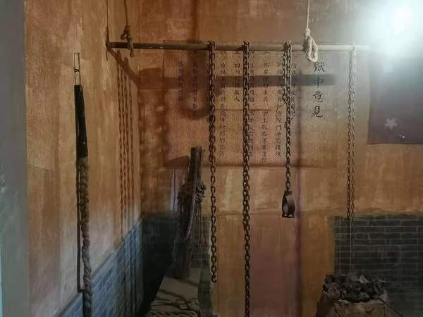 “忆佰”实践队赴山西国民师范旧址革命活动纪念馆参观监牢刑具 王奕晖摄