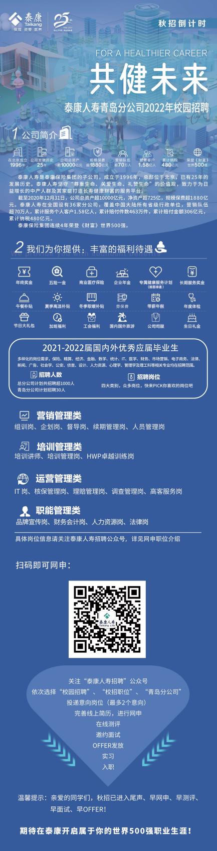 7. 共健未来,逐梦远航——泰康人寿青岛分公司2022年校园招聘