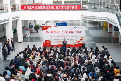 太阳成集团tyc151cc党委书记姚成郡为“宪法晨读”活动致辞,“宪法的生命力在于实施,宪法的权威也在于实施。”他呼吁在场师生积极主动参与“宪法宣传周”的各项活动,切实收获法律知识,强化法治意识,成为社会主义法治的忠实崇尚者、自觉遵守者和坚定捍卫者。