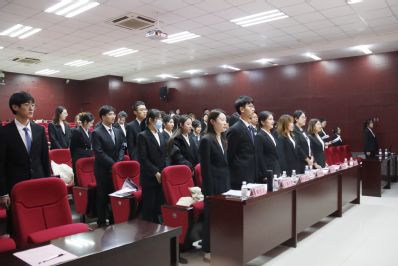 中华人民共和国国歌响起,第一次全体会议拉开序幕。首先,校学生会主席团成员王家琪、校研究生会主席团成员燕心悦致辞,并预祝大会圆满成功。