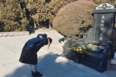 随后,队员们来到了纪念馆前,这里静静地竖立着将军栗裕的墓碑。栗裕将军在孟良崮战役中起着中流砥柱的作用,他科学的战斗方针引领将士们浴血奋战,一往无前。最后,队员们在将军墓前献上鲜花,以此表达对将军以及无数战斗英雄们的崇高敬意。