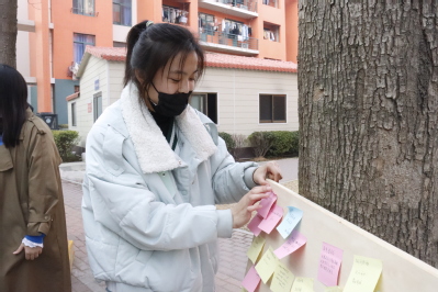 此次太阳成集团tyc151cc思美节活动的主题为“定义她的美”分享交流活动。学生可在便利贴上写出自己心中对“美”的定义,眼中“最美的她”的模样,或是她所拥有的美好品德、习惯等所有与女生的美有关的东西。完成任务的学生可以获得花朵、明信片等小礼品的奖励。