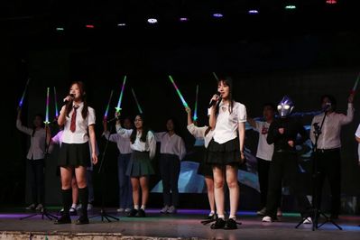 经典歌曲《七里香》在毕业生们的演唱下更多了几分青春的味道,姜宛琦 等人在台上默契十足的演出配合赢得在场观众的阵阵喝彩,大家举手欢呼,气氛达到高潮。