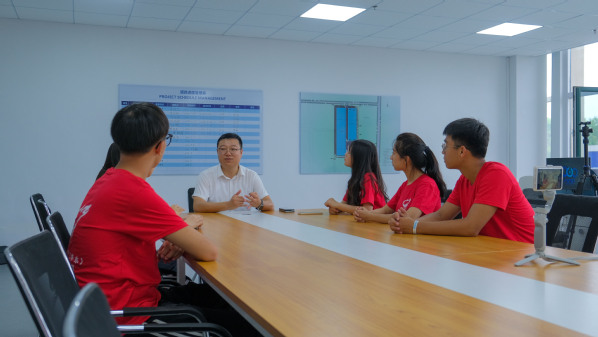 负责人为实践队介绍工厂现状 特写 于浩然摄影