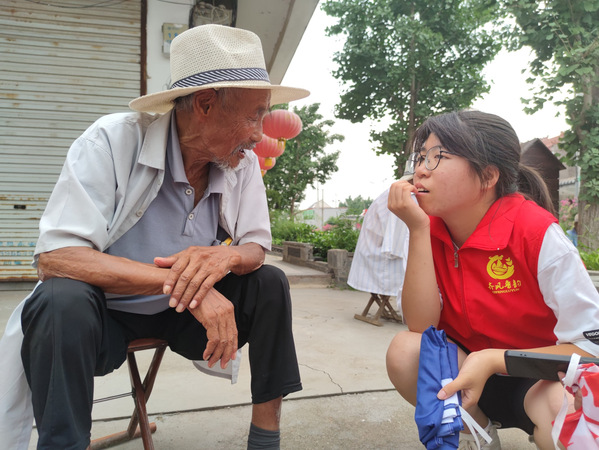 实践队员与“老支前”王克昌老人交流朱村近些年的发展变化 窦艺丹摄