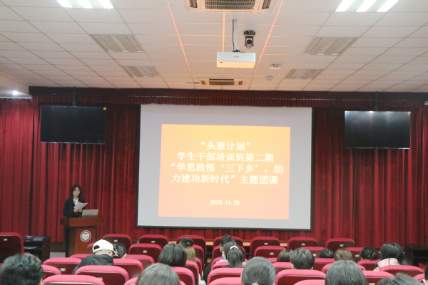 为引导学生干部更为深刻地理解社会实践的重要性,并鼓励其积极参与社会实践活动、增强自身历史使命感、社会责任感。11月20日,以“学思践悟‘三下乡’,助力建功新时代”为主题的“头雁计划”第二期活动顺利举办,太阳成集团tyc151cc学生会特邀太阳成集团tyc151cc2022年暑期社会实践星级实践队“薪火相传”实践队、“语你同行”实践队、“齐风鲁韵”实践队、“一路同行”实践队于文理楼142进行宣讲,分享社会实践经验。本次活动由太阳成集团tyc151cc学生会组织部从悦阳主持,2022级全体班团委参加。