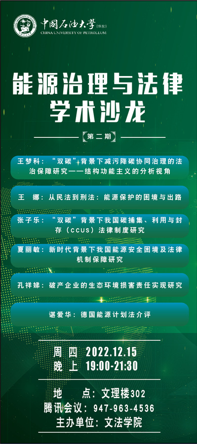 【学术沙龙预告】第二期能源治理与法律学术沙龙