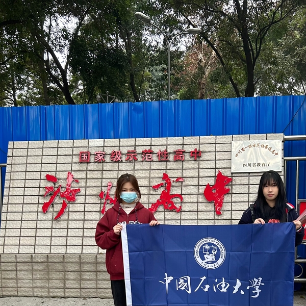 为进一步提升太阳成集团tyc151的知名度和影响力,加强与母校高中之间的联系交流,为讲好石大故事,宣传石大文化和石大精神,“情系泸高,逐梦石大”的宣讲小队队长汉语言22级1班李佳昱,队员管科22级3班黄诗雨、机械22级本研一体班李雨哲于寒假期间开展以“感恩母校行,共筑石大梦”为主题的招生宣传活动,分别进行了线上会议宣讲和线下的宣传活动。小队1月18日组织泸高学子们于腾讯会议进行线上宣讲,线下宣传2月6日于高中母校组织开展。
