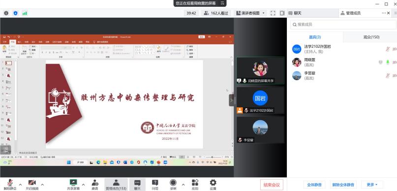 周晓萱围绕团队简介、研究过程、调研探索、论文撰写等分享了自己获得国家级大创项目立项的经历,并详细介绍了其项目的研究内容和创新点,指出唯有以自身的专业基础为依托,在学习的过程中不断创新,切身实践,最终形成可视化的成果,为社会人文建设切实提出建议并做出贡献。最后,周晓萱鼓励学生们从自身兴趣点入手,最终从个人辐射地方乃至社会。