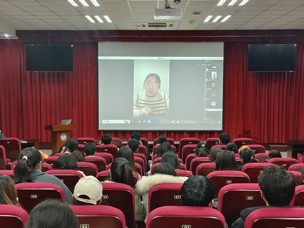 讲座伊始,主讲人丁晓方就工作感悟、高效备考和毕业选择三方面展开了分享交流。丁晓方讲述了自己过去几年在乡镇中忙碌而温馨的抗疫工作,分享了近四年的工作感悟,“基层工作确实很辛苦,但看到自己的工作能够给当地居民带来实实在在的便利时,真的会有由衷的成就感和满足感。”这让学生更加了解基层工作者的日常。随后,丁晓方以自己的备考经历为例,提醒学生注重日常积累,充分认识自我,根据自身的特点选择线上或线下备考,从而找到适合自己的学习方法。同时,针对就业和求学的两难选择,丁晓方向学生们建议:“不能只看眼前,要有长远的规划,可以先去尝试自己更感兴趣的工作。”在最后的交流环节,针对学生的提问,丁晓方进行细致地解答,并分享了查询公务员和选调生选拔信息的途径,为学生们日后快速获取相关信息提供了便利。