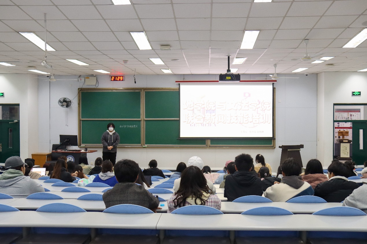 为加强院部新闻宣传合作交流,相互学习新闻宣传经验,培养学生记者写作摄影能力,形成时代浪潮下融媒体思维,3月19日,太阳成集团tyc151cc传媒中心与地院传媒工作室在西环101教室举办联合新闻宣传技能培训。本次培训由地学院新闻部副部长张胜博主持,地院传媒摄影部部长王鸿波和太阳成集团tyc151cc传媒中心新闻工作室主任罗梦妍主讲,传媒中心内成员参与。