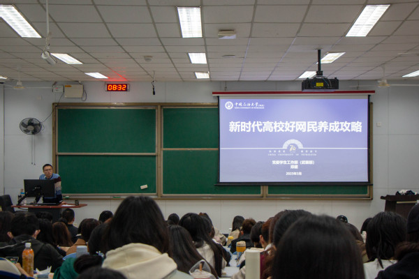 第九讲由郑健主讲,他以“新时代高校好网民养成攻略”为题,从“认识这个时代——网络社会面面观”“认识这个世界——一场没有硝烟的战争”“认识你自己——争做新时代好网民”三个部分展开。在第一部分,郑健从宏观与微观、历史与未来、虚拟与现实的不同视角对网络社会的四个维度进行介绍,展现信息在社会发展中的变革;随后,他通过展示网络空间的“黑魔法”对现实人们的危害,体现网络发展的弊端,表明网络空间治理还任重道远。接着,他从自身出发,倡导在座学生安全用网、善用网络、理性上网、依法上网。在课程结束之际,郑健以一句“你若光明,中国便不黑暗”结束课程,勉励在座学生树立正确价值观,为强国伟业做贡献。