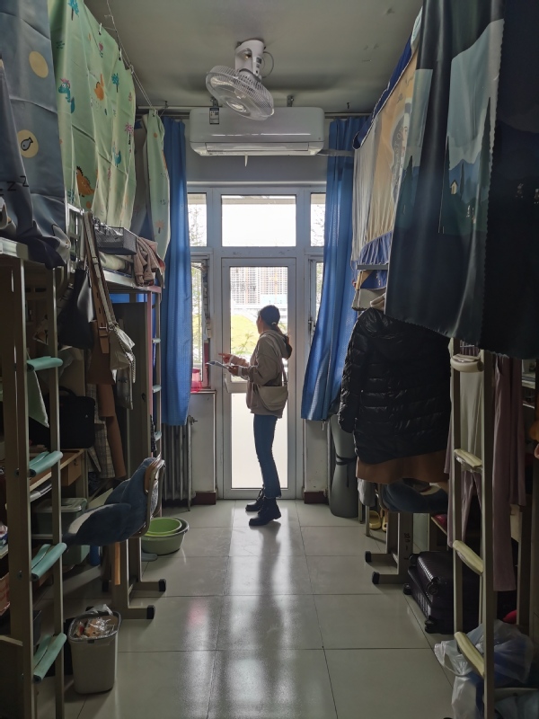 在严格检查标准的同时,陈熙书记、辅导员们耐心指导,与学生积极交流,普及关于安全用电、防盗防火防诈骗等宿舍安全常识,了解学生学业情况,关注学生心理状态,同时叮嘱大家注意春季疾病预防,加强体质锻炼,共同爱护和保持好宿舍卫生。陈熙指出:“本次安全卫生大检查的目的是督促同学们建立一个舒适和谐的学习生活环境,对可能发生事故的安全隐患进行深入摸排与整改。真正达到‘以查促建、以查促改’的目的。”师生关系在亲切交流中更进一步。