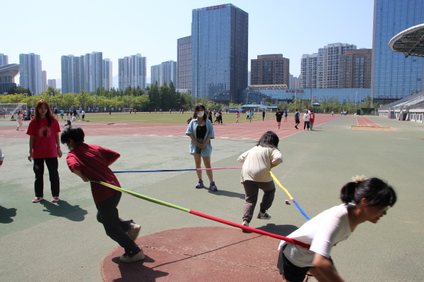活动伊始,由朱承介绍活动背景和讲解五四精神。通过讲解,团员们对五四精神和本次活动的理解更为深刻。接着,法学2202团支部体育委员杨亦然介绍活动项目以及比赛规则。本次趣味运动会共有五个项目:坚定不移 (东西南北跑)、寸步难行(双线搭桥走乒乓球)、胸有成竹 (翻牌子,记数字)、同舟共济(两人三足plus版)和灵活机敏 (躲沙包)。规则介绍完成后,项目开始依次进行。随着裁判一声令下,选手们纷纷动身:在“坚定不移”中,展现对抗力;在“寸步难行”中,展现专注力;在“胸有成竹”中,展现记忆力;在“同舟共济”中,展现团结力;在“灵活机敏”中,展现敏捷力。选手们挥洒汗水,观众鼓掌欢呼,现场充满竞争和激情,同时也充满友谊和合作。最后,法学2202、物探2202两团支部交流感想,并合影留念。