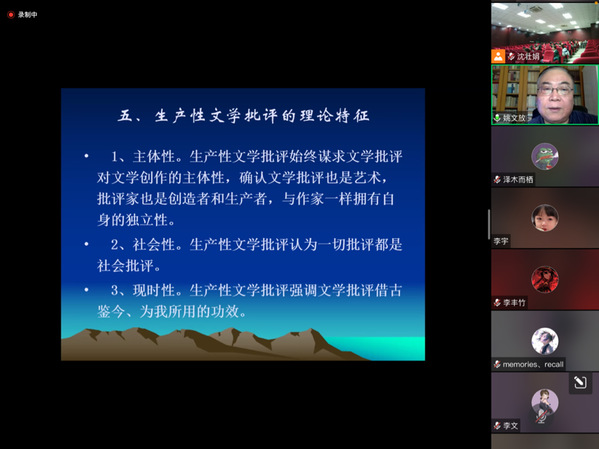 在交流互动环节,姚文放针对学生提出的“文学批评理论如何运用到具体文本中”“如何从众多文学批评理论中选取合适的理论”等问题进行详细解答。