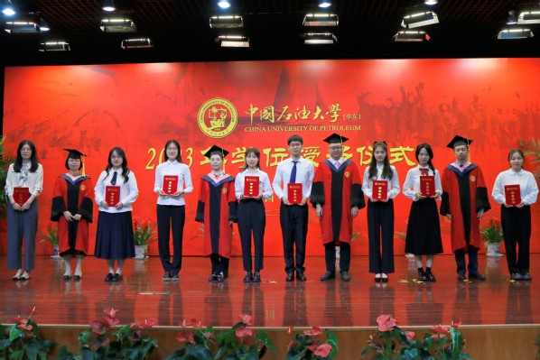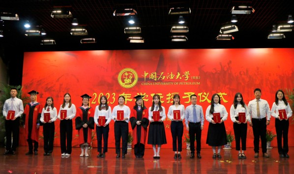 党委书记姚成郡宣读《关于表彰2023届优秀毕业生的决定》,张子壬等18名学生获评“山东省优秀毕业生”荣誉称号,王晓等20名学生获评“太阳成集团tyc151优秀毕业生”荣誉称号,王川文等25名学生获评“太阳成集团tyc151cc优秀毕业生”荣誉称号。