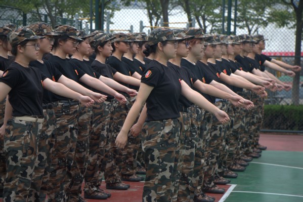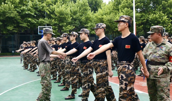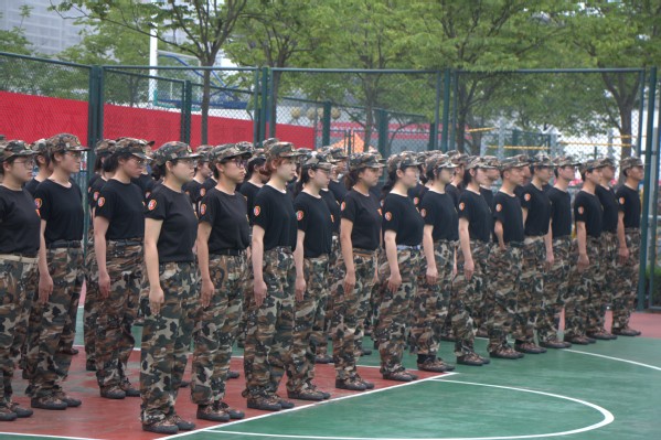 军训动员大会结束后,文法七连学生集结完毕,以饱满的热情迎接一天的军事技能训练。