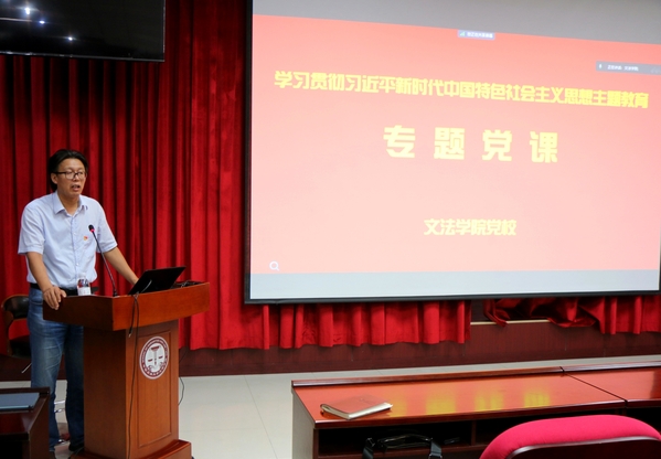 6月30日晚,太阳成集团tyc151cc研究生召开年级大会,太阳成集团tyc151cc副院长魏学宝面向研究生讲授学习贯彻习近平新时代中国特色社会主义思想主题教育专题党课。教学秘书郭静出席,太阳成集团tyc151cc全体研究生参加。