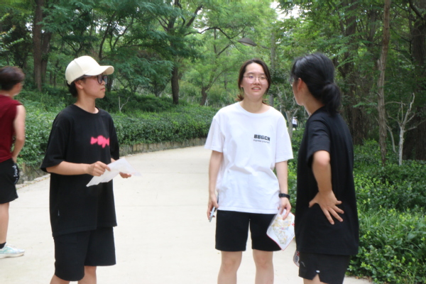 活动开始后,各组依次出发,队员们手持校内地图,通力合作、分工明确、合理规划、全力以赴。文法学子们不惧高温天气、不畏路途遥远,团结一心,共克难关。此次活动既锻炼了学生们的体力、耐力和识图用图的能力,也验收了我院军训的训练成果。