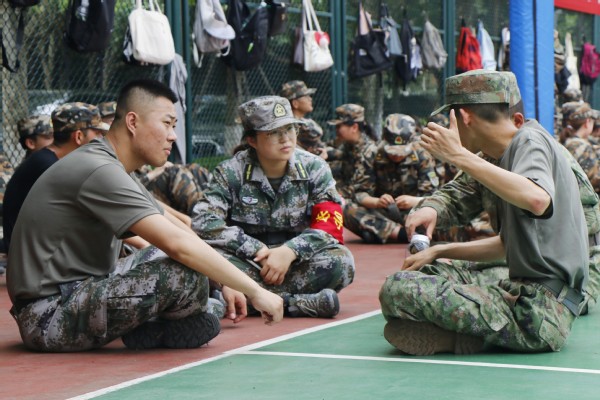 军训虽艰,温情不减。在训练期间,营长陈熙、参谋于露和副院长冷凌来到训练场慰问,并为教官送来润喉药。指导员杨倩与陈旺在军训过程中坚持陪伴,悉心指导,休息时亲切询问学生的训练情况,确保为学生提供良好的安全保障。