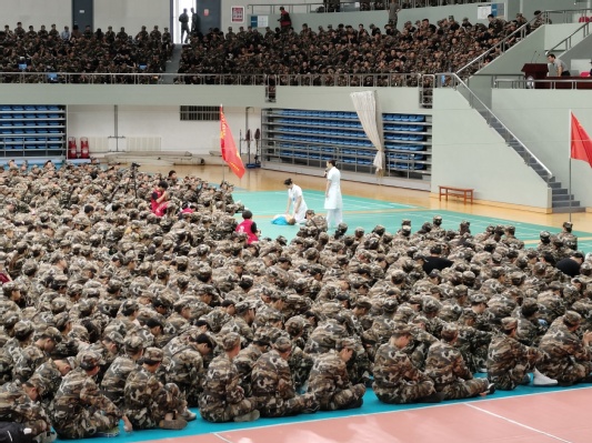为增强大学生禁毒意识,普及基础急救知识并使其掌握一定要领以及学习必要的消防知识,在实践中检验消防逃生效果,7月8日上午九点,我校于体育馆召开防护知识讲座并进行了紧急逃生演练。文法四营七连全体学生、教官及指导员参与。