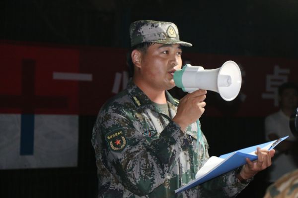 拉练教官讲话 王淑娜摄