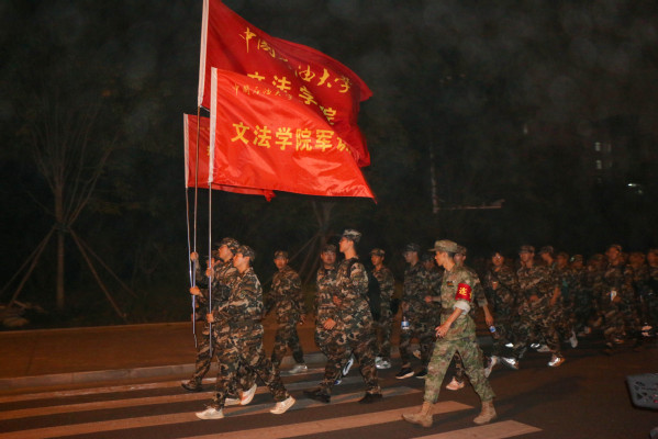 营长陈熙、参谋于露、指导员杨倩和陈旺全程跟随,为学生们鼓舞士气;教官吴睿杰、于继玺随时查看队伍情况,并在行军过程中悉心关护拉练学生。大雾朦胧,抵挡不住文法学子铿锵的脚步。旗帜挥舞,展现文法学子意气风发的飒爽英姿。整支队伍士气高昂、精神振奋,发扬肯吃苦、不怕累的向上精神,用高标准严格要求自己,保质保量,准点按时地完成了军训任务,为拉练画上了一个完美的句号。