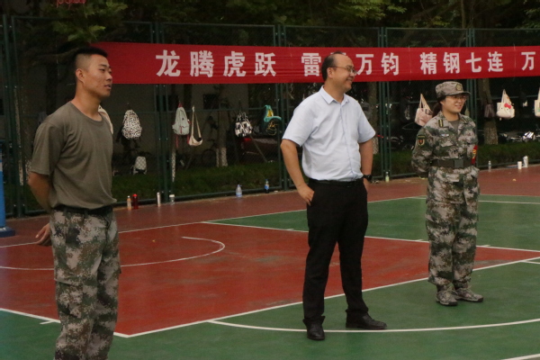 参谋长韩德凯来到训练场地,深入地了解了学生们的训练项目、训练进度、身体状况等相关情况,对军训相关工作提出具有针对性的指导意见并悉心指导学生的训练动作。他表示,各位同学要通过军训磨练意志,提高身体素质,坚定理想信念,在训练中不断完善自我。随后,营长陈熙对教官们的辛勤付出表达了诚挚的谢意,赞扬了学生不惧艰苦的训练热情和斗志昂扬的精神风貌,并对近期的军训成果给予了充分肯定。并对学生的训练提出建议。