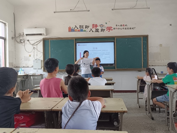 “在趣味英语中和孩子们一起感受英语的魅力”支教队成员贺韵萌为孩子们带来了趣味英语课程,在课堂上,她通过给孩子们播放趣味英语的动画片,让孩子们在寓教于乐中增加英语的趣味性;她通过一张张有趣的图片,让孩子们认识英语单词;她通过倾听每个学生读单词,纠正孩子们的发音……支教队成员贺韵萌满怀期待:“当我听到孩子们在我的指导下纠正自己的发音以及在日常生活中听到他们学着用英语来表达自己,我内心是很欣慰的。我希望能够用自己微不足道的力量,给孩子们一些启发、培养孩子们对英语的兴趣,从而让他们能够勇敢地张嘴说英语。”