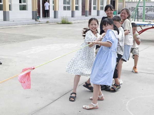 孩子们进行拔河比赛 张雅慧摄