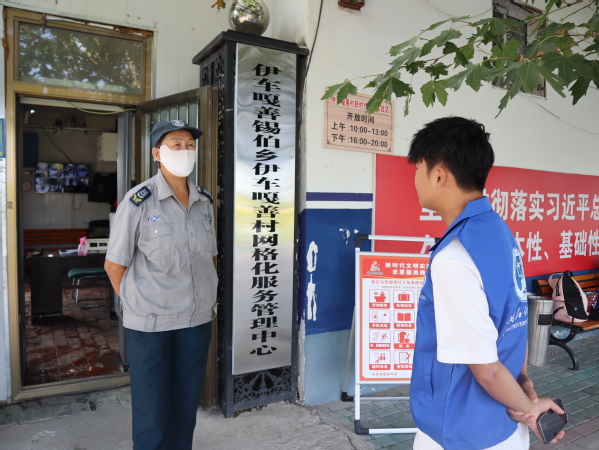 为不断增强民族团结意识,筑牢民族关系之基,使各民族和谐共处,守望相助,共同谱写“民族团结一家亲”的温暖篇章,8月12日上午,情寄天山实践队前往新疆维吾尔自治区霍城县伊车嘎善村村民委员会进行调研。