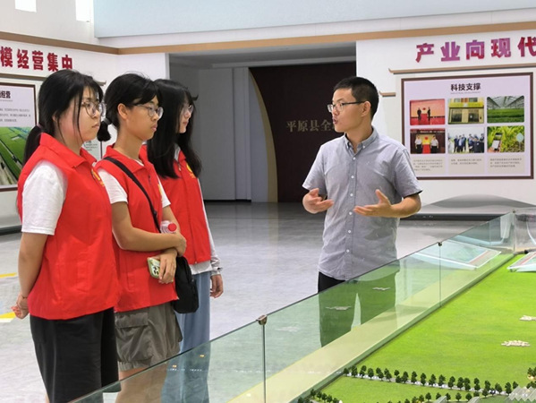 山东省德州数字农谷负责人为队员讲解德州农业品牌及产业园区的发展历程 李娜摄