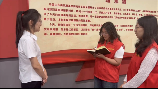 经过中午短暂的休整后,实践队乘车赶往博兴高家渡革命历史文化展馆,感悟革命历史,赓续红色精神。博兴高家渡革命历史文化展馆自开馆以来接待了8余万人次的参观学习,收到了良好的国防教育效果,曾获命名为“山东省国防教育基地”。通过讲解员的细致解说与亲身体验,实践队员们不仅加深了对历史的了解,培养爱国情怀和文化自信心,还从中汲取先进经验,提升自身素质,坚定了为实现中华民族伟大复兴而奋斗的崇高理想。