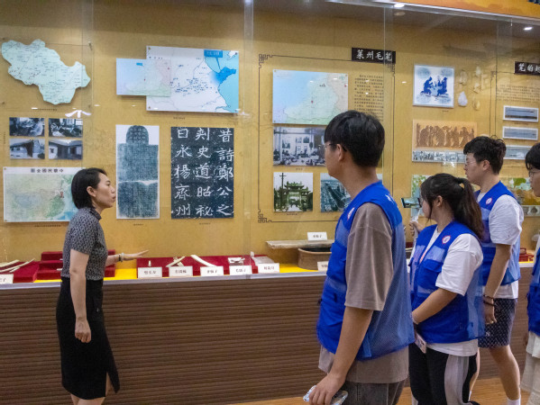 讲解员讲解莱州毛笔 李双羽摄