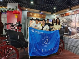 团队成员首先来到道路交通博物馆,在这座富有历史沉淀和文化内涵的殿堂中,存储着青岛道路交通的辉煌成就与悠远回忆。步入大门迎面而来的是一辆颇具时代气息的载人用车,跟随参观的步伐,展区内陈列的照片宛如一段时光长廊,生动地诠释了从古代到现在高速铁路的交通演变史。每一件展品都如珍宝般陈列,队员覃方意感叹:“交通工具的发展日益便捷,我不敢想象我能否适应从前没有如此交通工具的生活。”