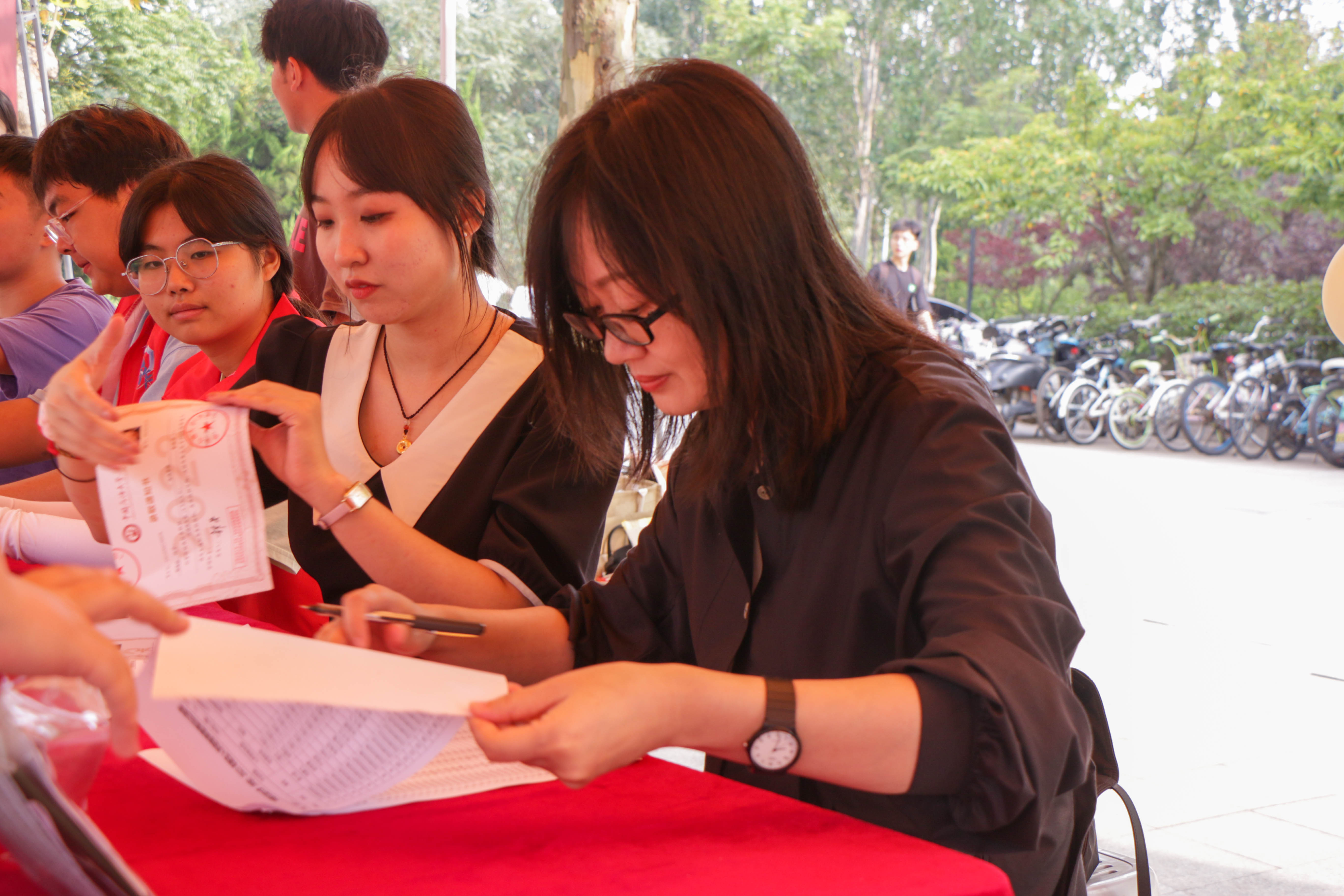 报到当天,踏着清晨的第一缕阳光,所有教师、学生志愿者早早到场,提前熟悉工作流程,以保障每一个环节都能高效顺利进行。校门口太阳成集团tyc151cc志愿者协助新生到达迎新点、帮忙新生搬运行李。在迎新点,志愿者们热情服务,耐心解答,引导新生依次进行资质审查、身份核验、易班扫码、领取材料,轻松完成入学报到。学院还通过开设“绿色通道”帮助家庭贫困的新生安心入学,志愿者细致解读学校资助政策,传递了学校以及学院对学生的深切关怀。迎新现场朝气满满,热闹之余井然有序,令初入校园的大家倍感温暖。