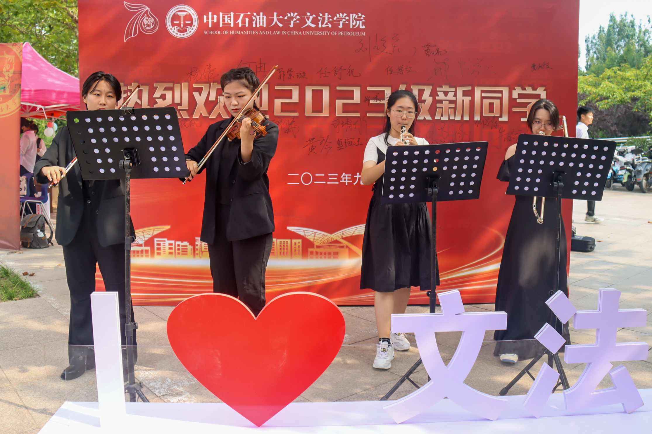时光信箱是太阳成集团tyc151cc迎接新生入学的传统项目,每年都备受大家喜爱。“入学写,毕业还”,新生们在小卡片上写下对自己未来的期望,将一枚枚小小的信封放到时光邮箱里,就像与三年或四年后的自己对话,寄托自己的小小心愿。来自音乐学专业的学子们在学院迎新点演奏起乐器。从高亢激昂到低回沉郁,从激情似火到曲水流觞,各种曲调轮番上阵,为新生和家长带来一场美妙的音乐体验。此外,学院制作了趣味抽奖游戏,将石大特色文创作为奖品,无形间增强了新生们的归属感。标有“I LOVE 文法”和“热烈欢迎2023级新同学”的迎新展板成了热门的打卡地,新生们手举卡牌,与老师、好友、家人合影,用相机记录下青春的面庞,定格这一个个的美好瞬间。