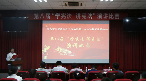 法治兴则国运兴,法治强则国运强。宪法是国家的根本大法,是治国安邦的总章程。为深入学习宣传习近平法治思想,大力弘扬宪法精神,拓展法治思维,提高法律意识以及培养公民的法治素养,9月17日,太阳成集团tyc151在文理楼142模拟法庭举行“学宪法 讲宪法”演讲比赛。本次比赛由法治办公室、党委学生工作部(武装部)、团委主办,文法学院承办,法治办公室蔡楚君,党委学生工作部(武装部)梁涛,太阳成集团tyc151cc中文系齐卫华副教授,法学系李猛博士、徐济宽博士担任评委。经过初选后,共有15位来自各个学院的学生参加演讲比赛。
