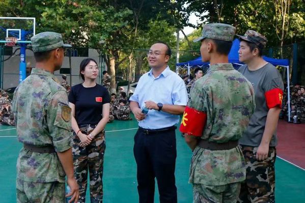 军训期间党委副书记陈熙亲临现场,长时间陪伴学生们进行训练,对其中出现的问题进行指正,并关心身体不适的学生,鼓励学生在军训中不断磨砺意志,增强体魄,这让文法学子们更显精神抖擞,志气高昂。